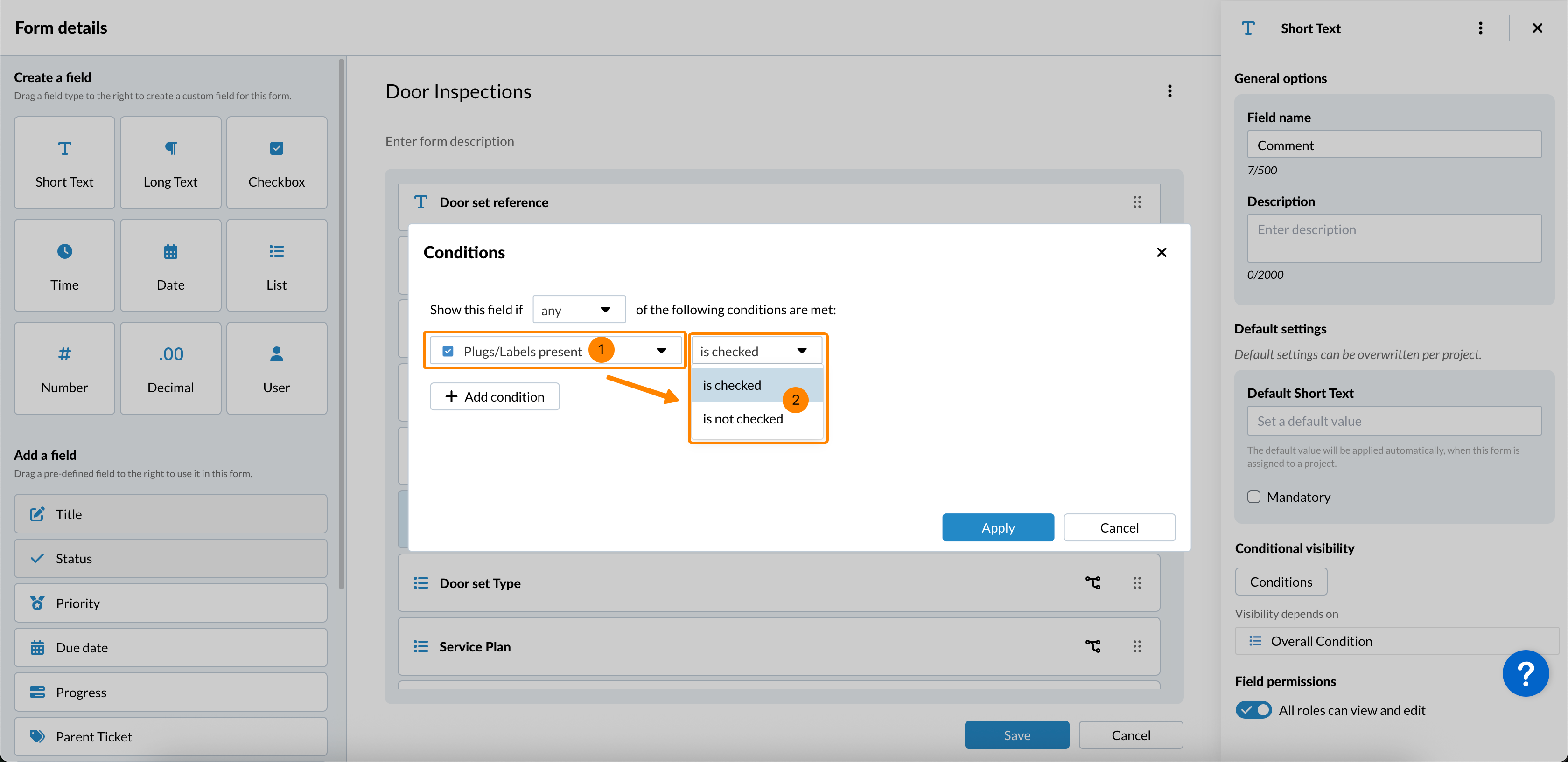 Warunkowe pola formularzy umożliwiają tworzenie dynamicznych formularzy Zadania, które dostosowują się do Państwa potrzeb. Umożliwiają one nowe przepływy pracy i sprawiają, że gromadzenie danych jest bardziej elastyczne i precyzyjne - przy jednoczesnym zachowaniu szybkiego i prostego procesu dla użytkowników.