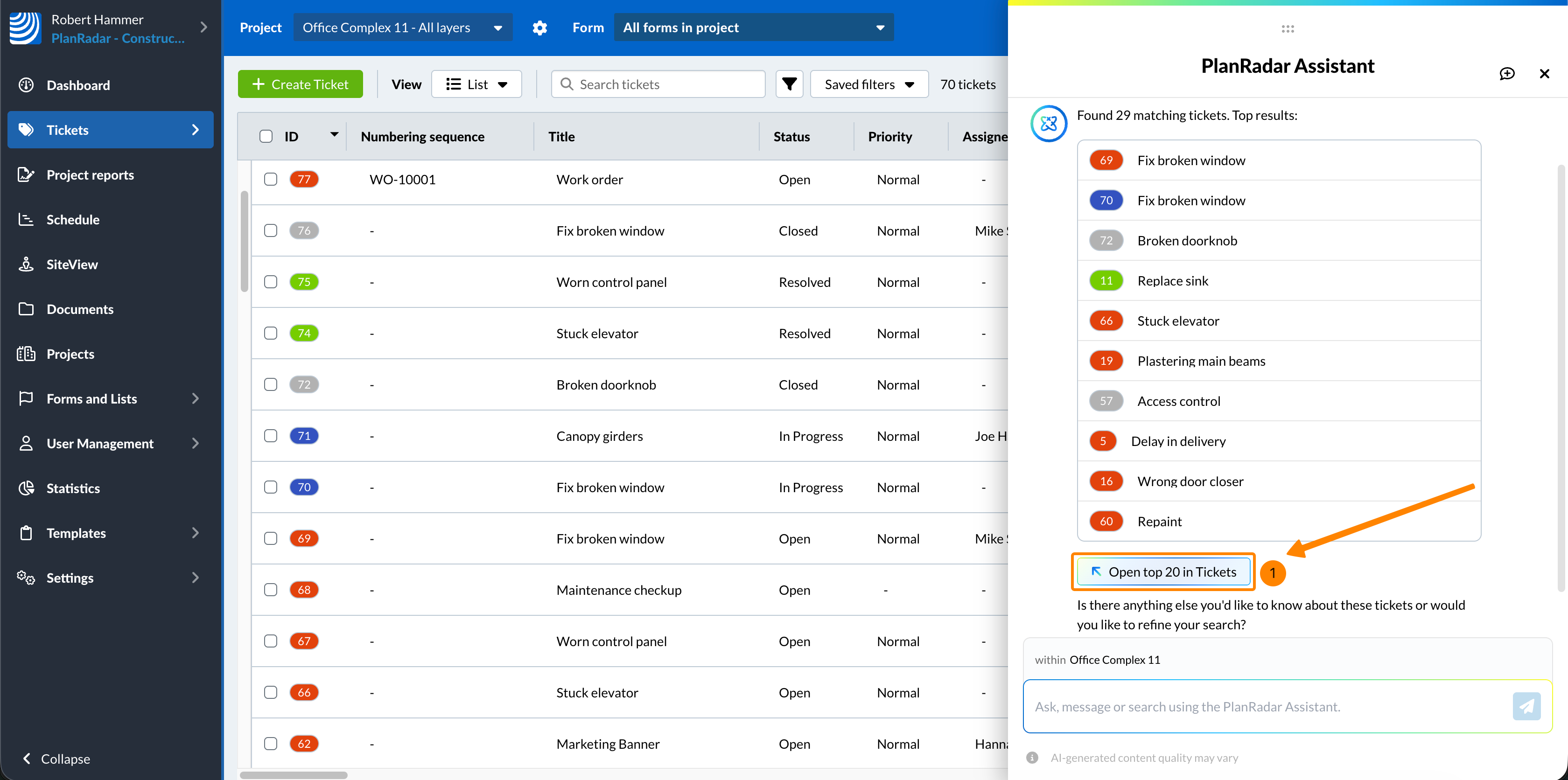 Na wyniki wyszukiwania AI nie mają wpływu aktywne filtry, wybrane formularze ani ręcznie wyszukiwane hasła. Przeszukane zostaną wszystkie strony Zadania w bieżącym projekcie, do których przeglądania mają Państwo uprawnienia.