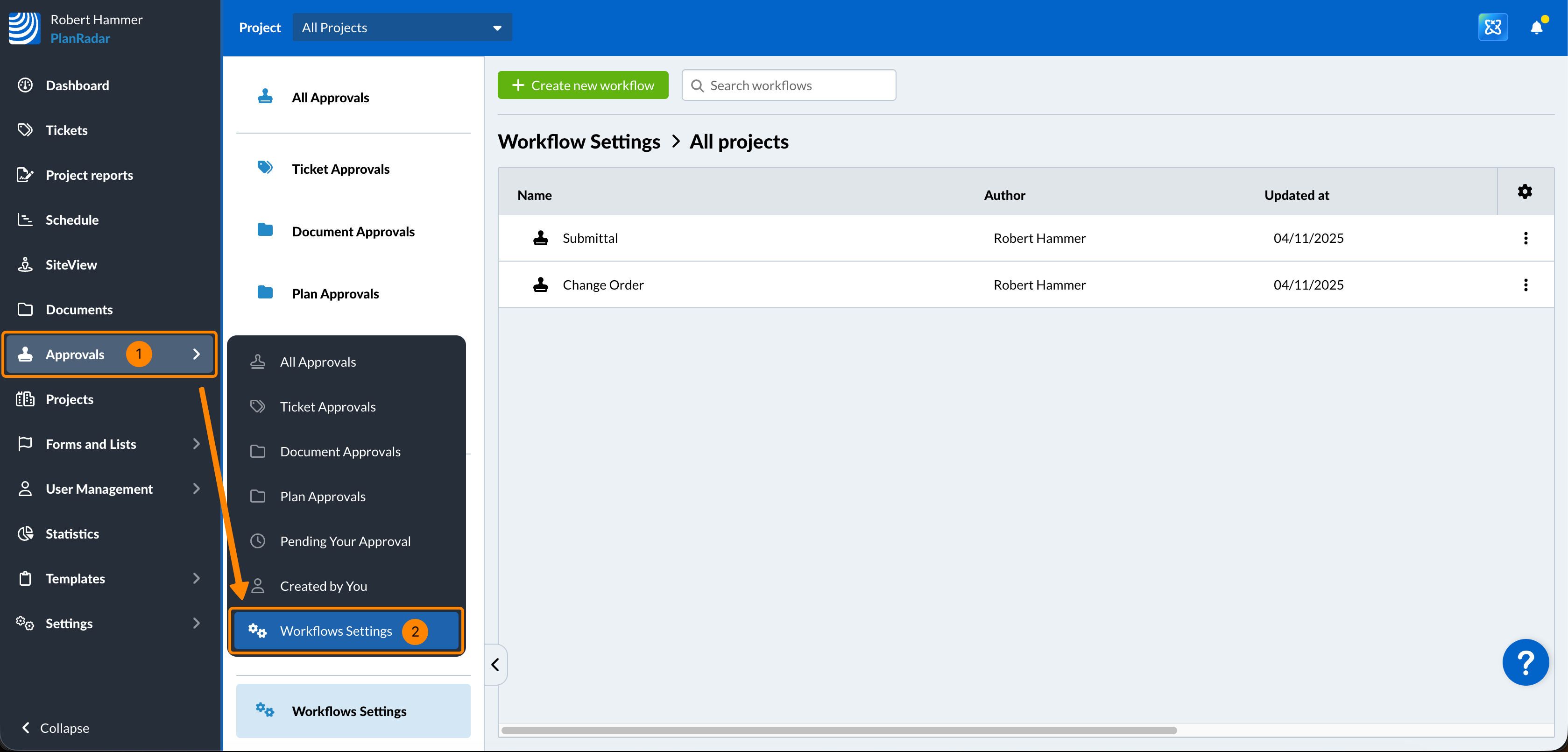 Tworzenie przepływów pracy zatwierdzania w celu wstępnego zdefiniowania kroków i recenzentów wymaganych do przeglądu i zatwierdzenia Zadania, plików lub planów.