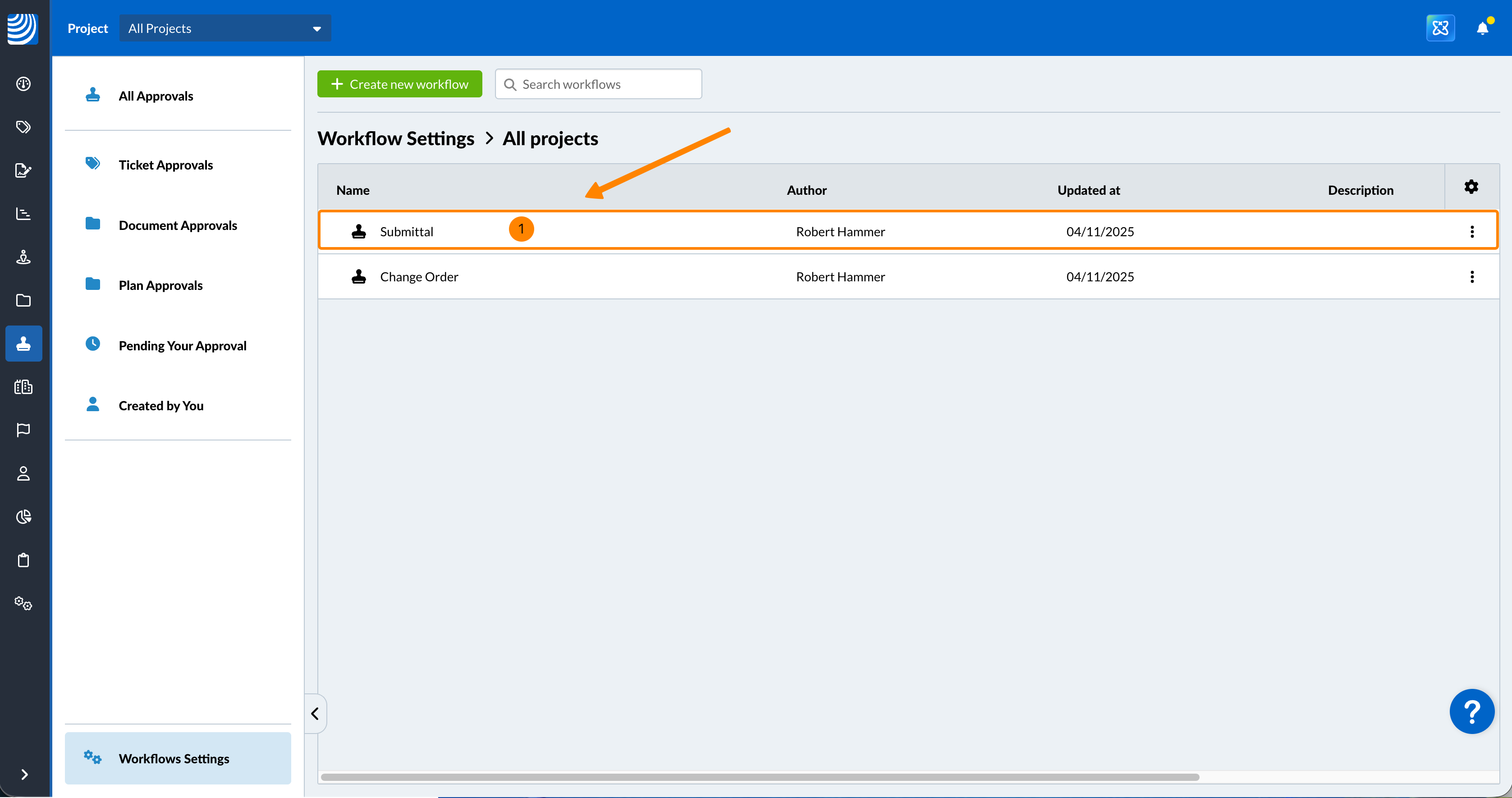 Aby tworzyć i edytować przepływy pracy zatwierdzania, należy wybrać opcję "Wszystkie projekty".