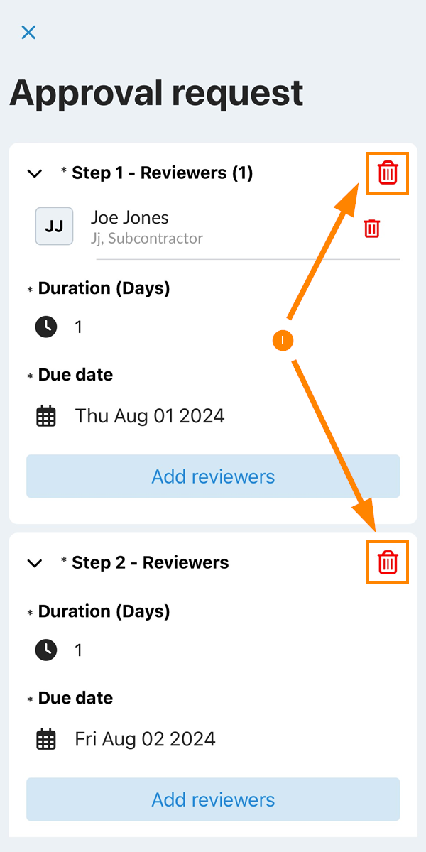 Proszę dodać jednego lub więcej recenzentów do każdego kroku i ustawić czas trwania lub termin dla każdego kroku, jak opisano powyżej w Wypełnij i wyślij wniosek o zatwierdzenie i powtórzyć, aby dodać więcej kroków.