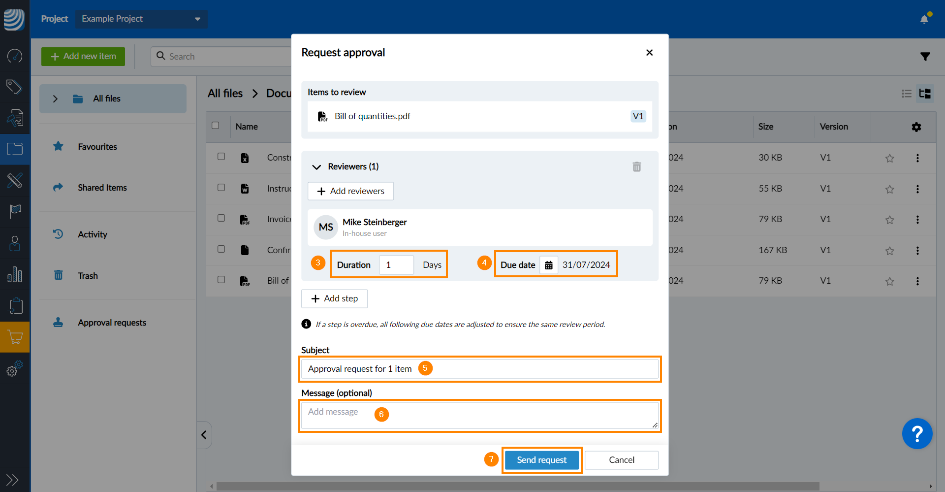 Kiedy Prośba o zatwierdzenie dla pojedynczego pliku (lub dla wielu plików - jak opisano powyżej), nie trzeba wielokrotnie wypełniać tych samych recenzentów i kroków, jak opisano powyżej w Wypełnij i wyślij prośbę o zatwierdzenie.