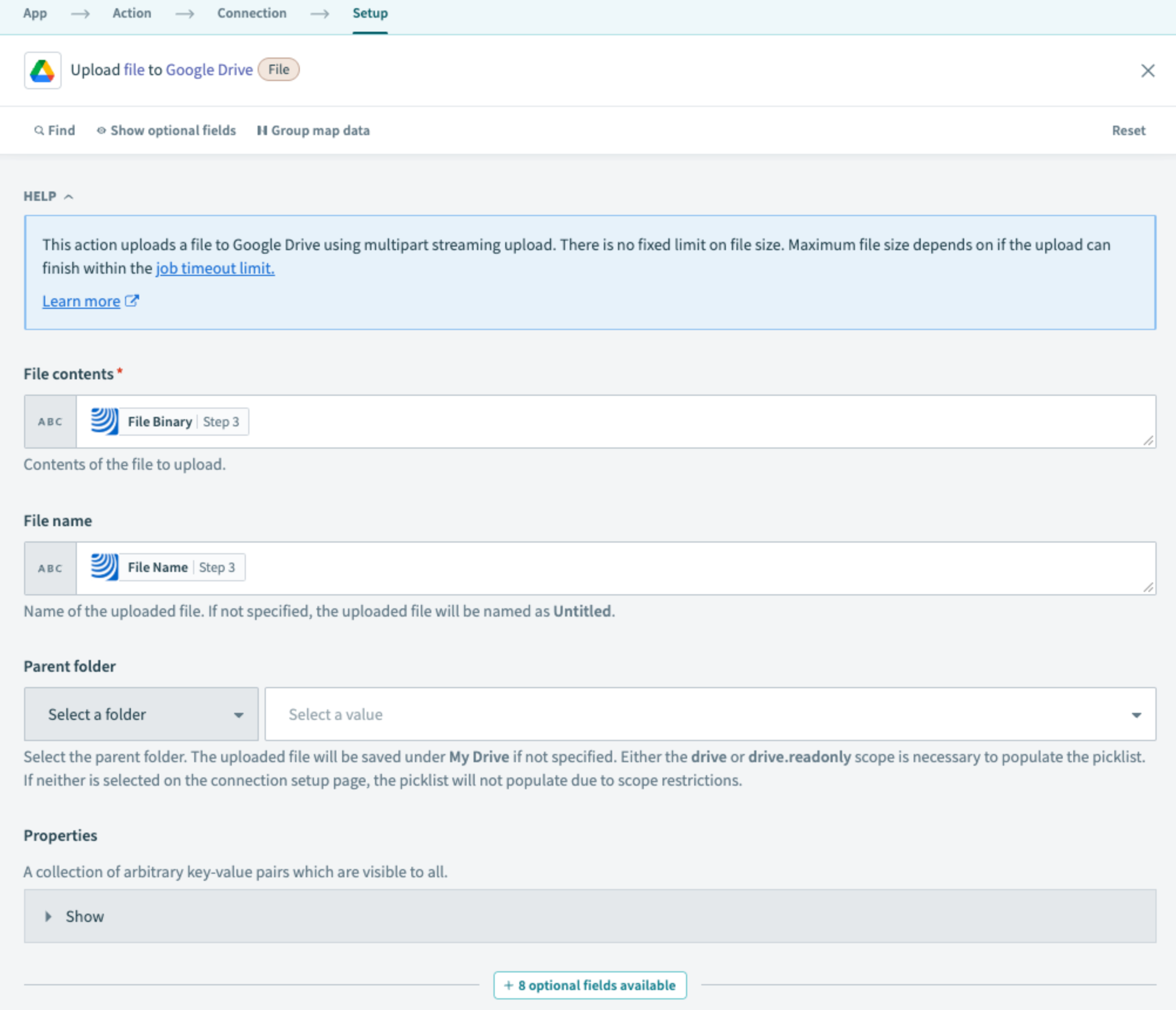 Należy utworzyć docelowy folder GDrive