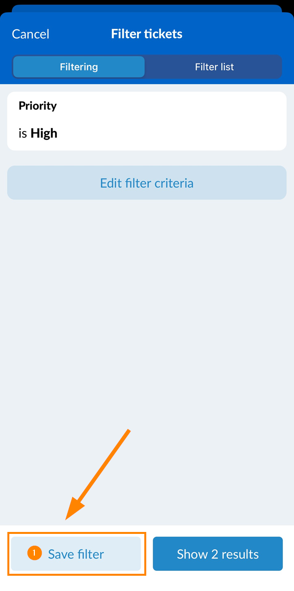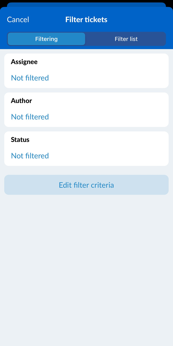 - Toque no filtro, por exemplo, My open tickets