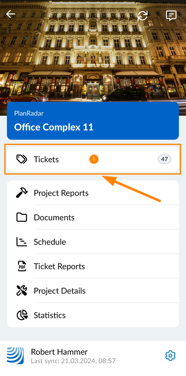 - Toque em Tickets no menu principal