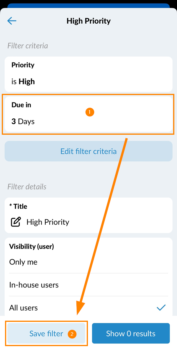 - Toque em Salvar filtro