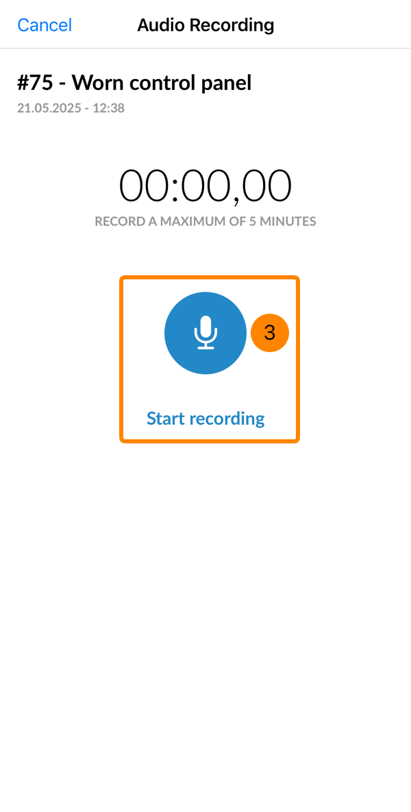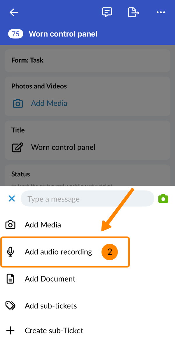 Adicione uma gravação de áudio ao criar ou editar tickets.