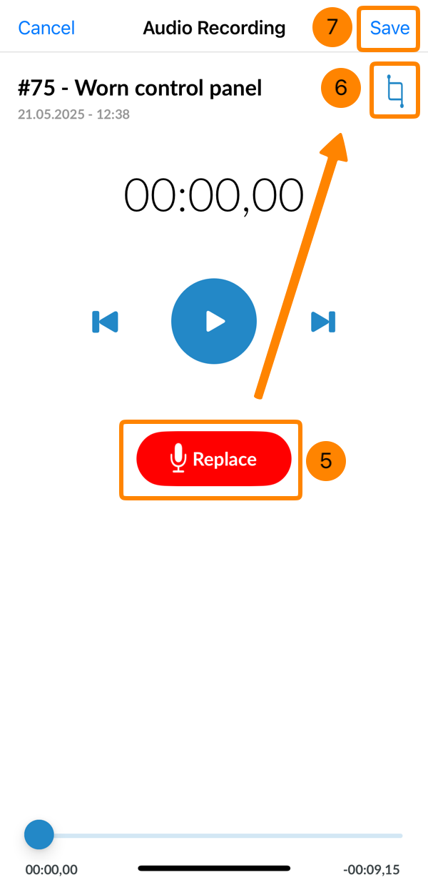 - Opcional: Toque em Replace se quiser excluir a gravação e começar novamente.
