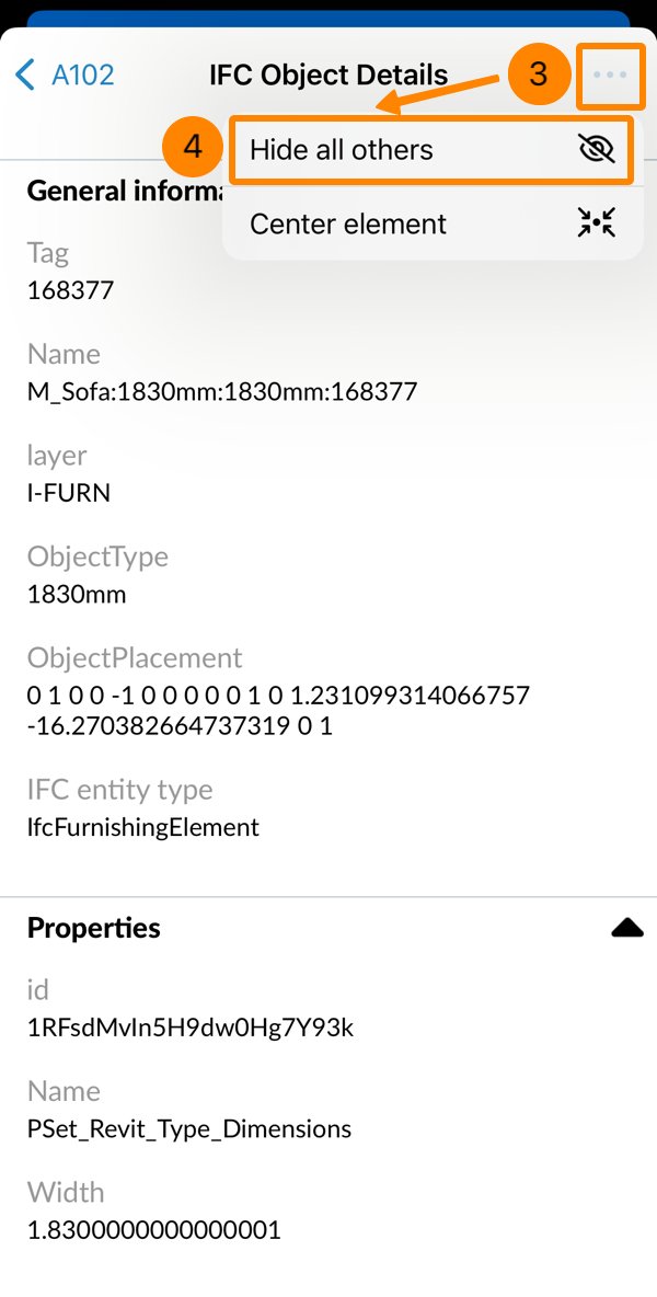 Para exibir um objeto no visualizador BIM e ocultar todos os outros objetos: