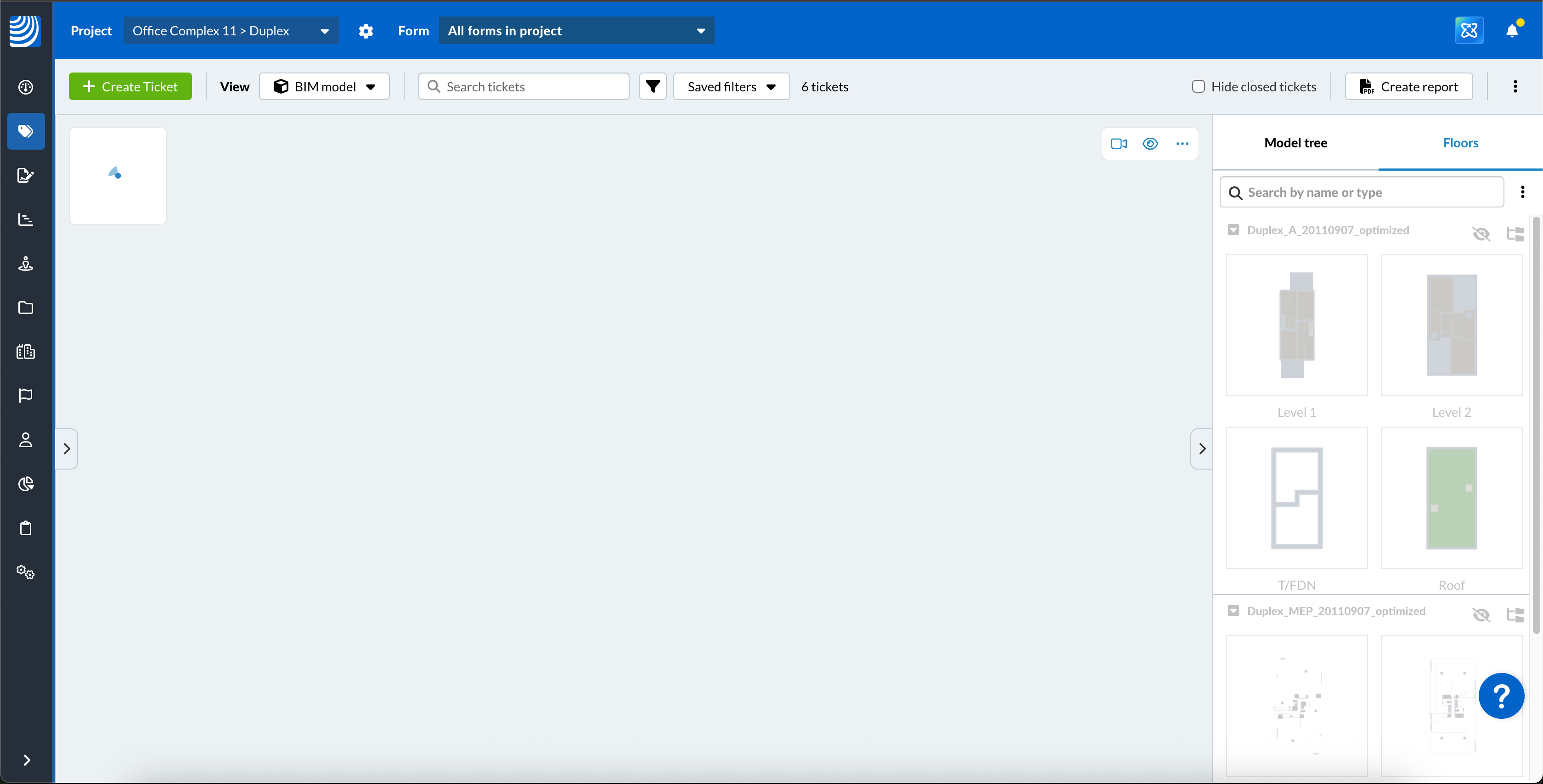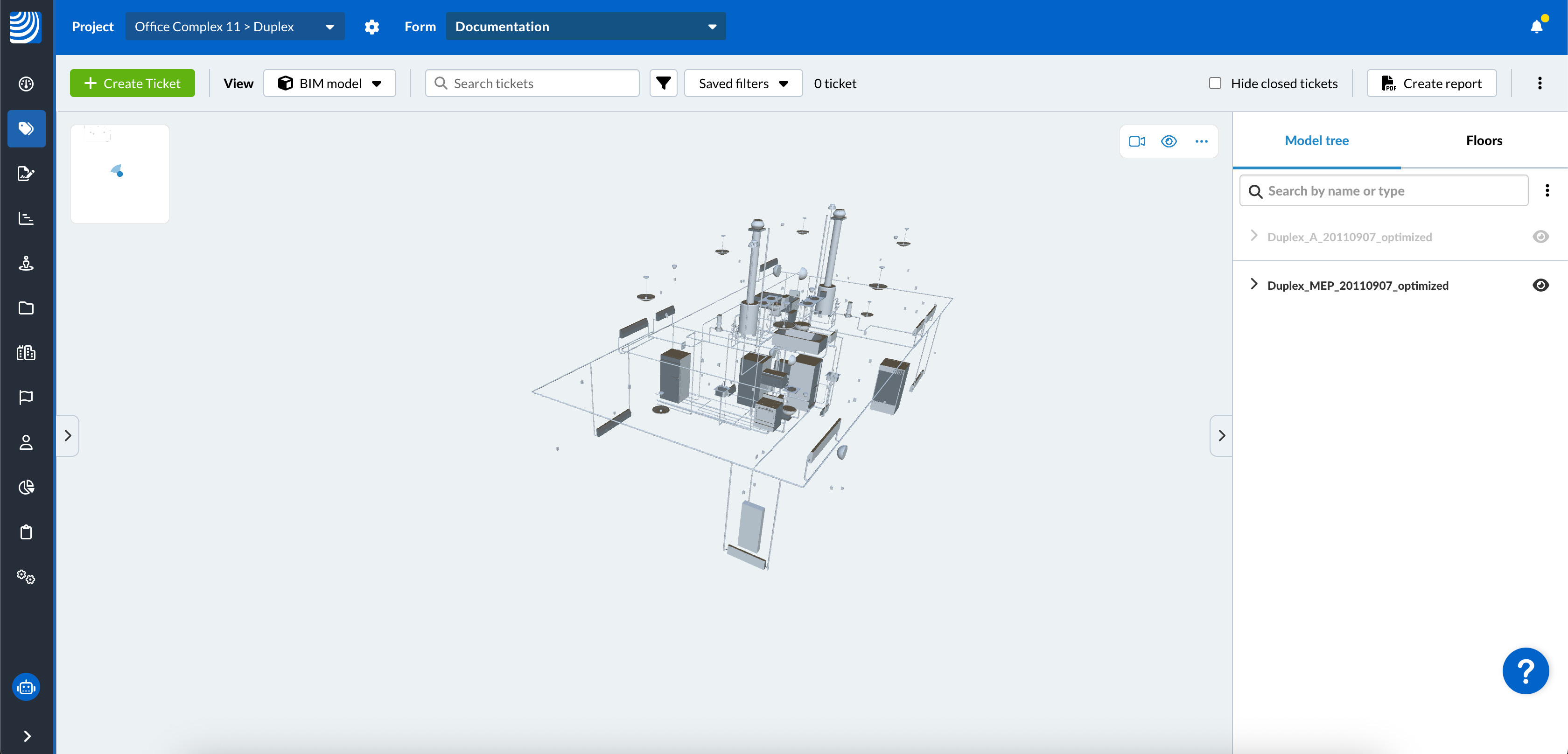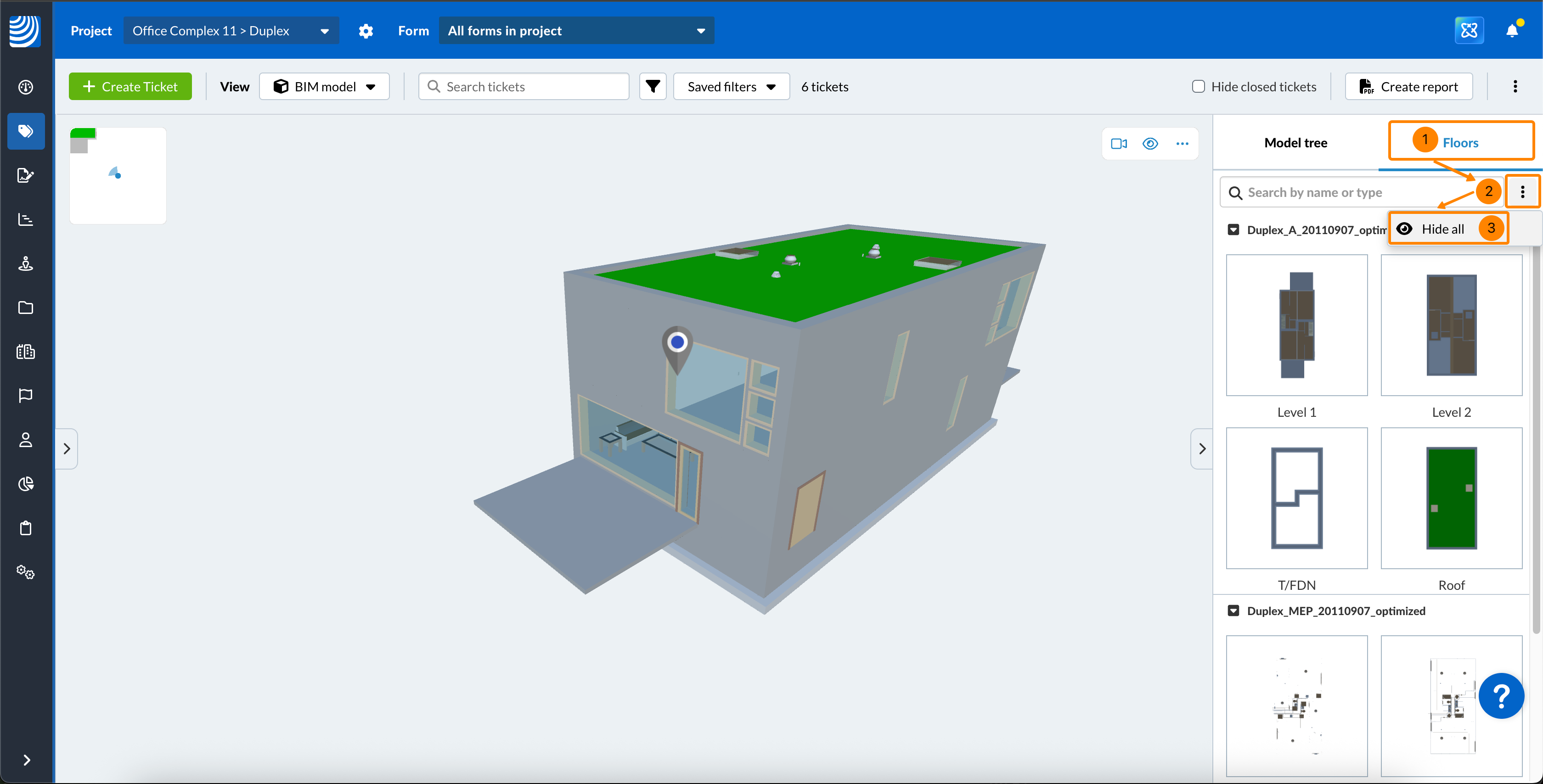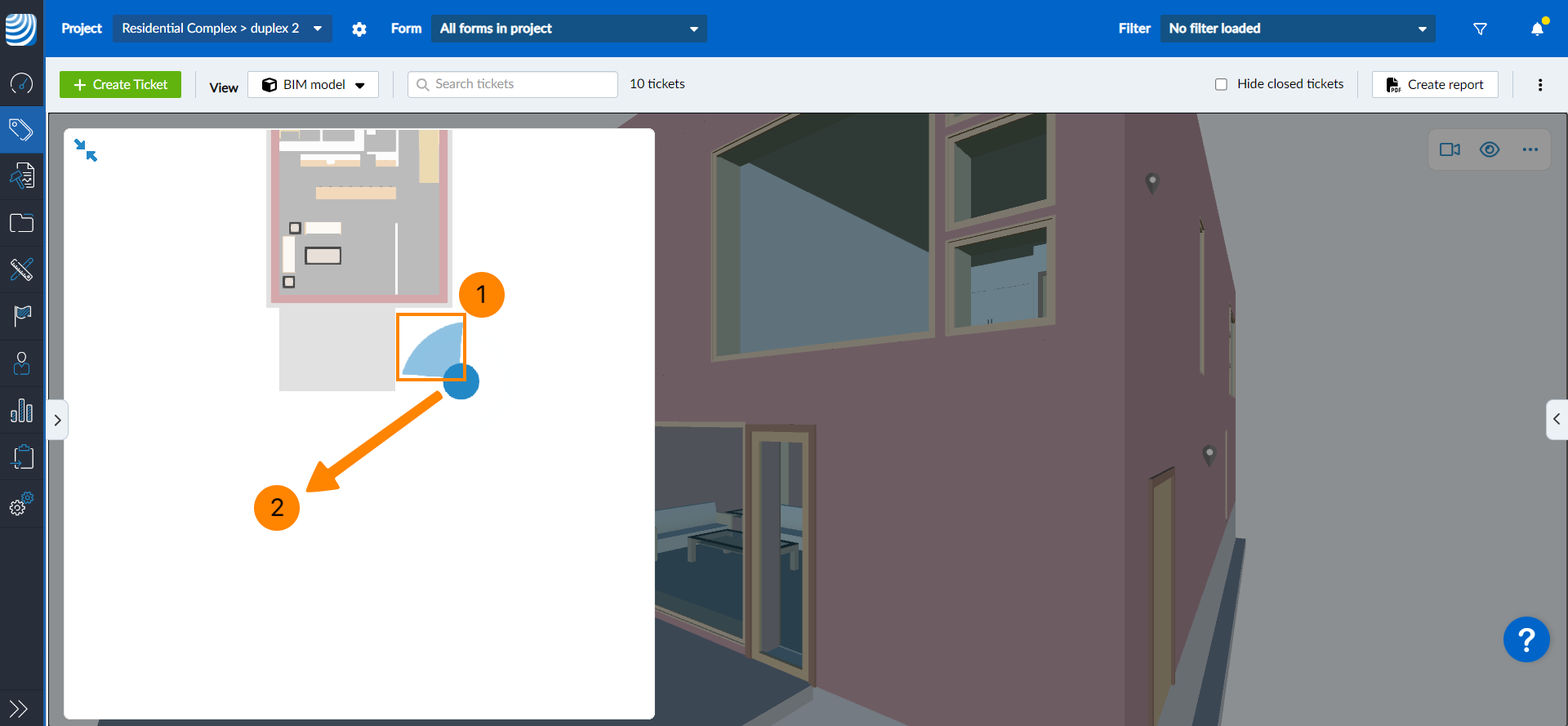Usando o visualizador BIM, o senhor pode criar e visualizar tíquetes nos modelos BIM.