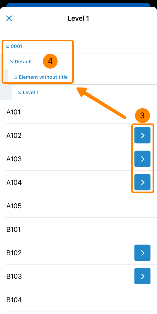 Opcional: Toque no nível anterior para voltar a subir na estrutura
