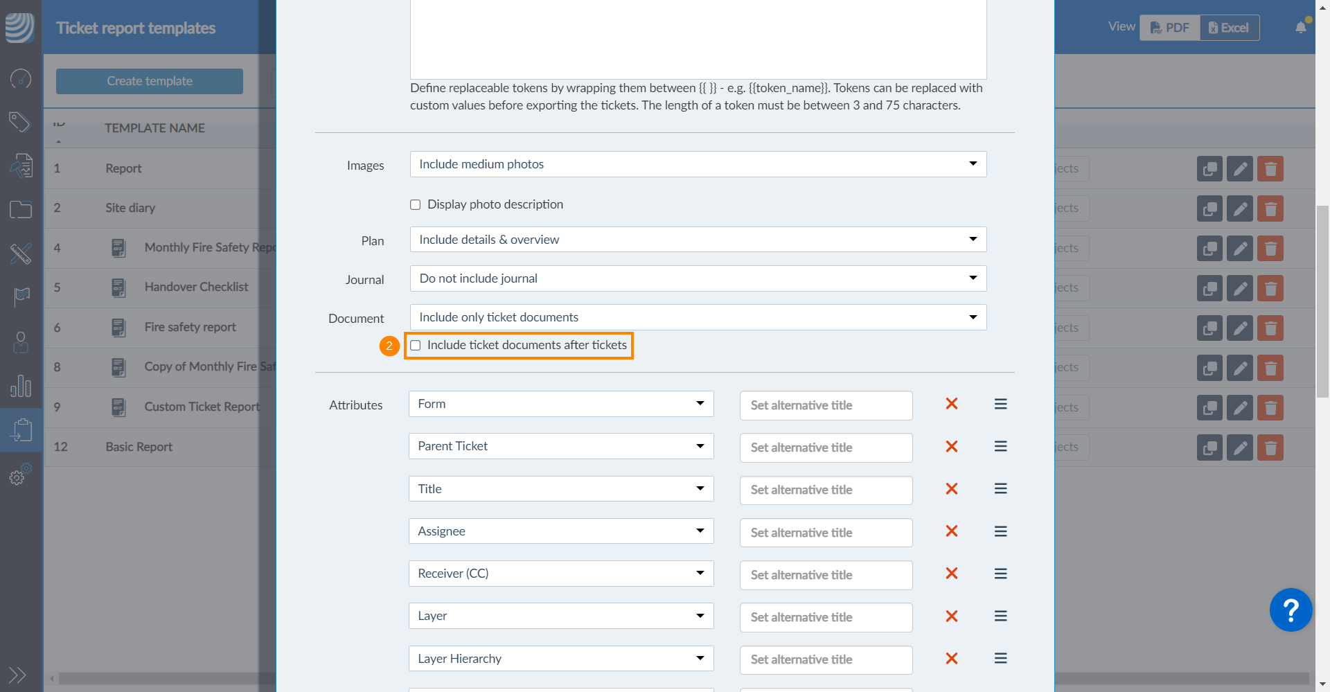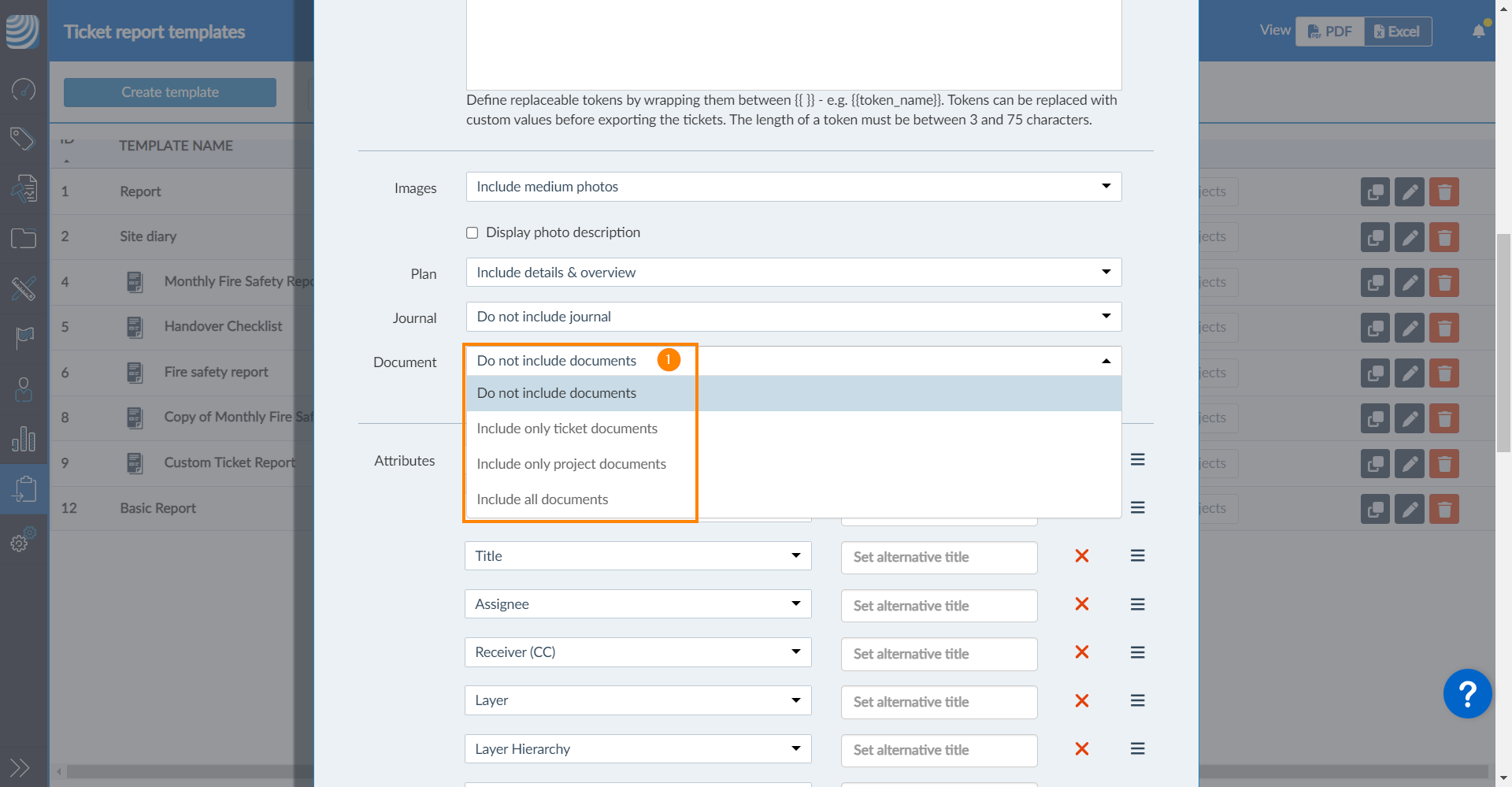 - Selecione Include only ticket documents OU Include only project document OU Include all documents