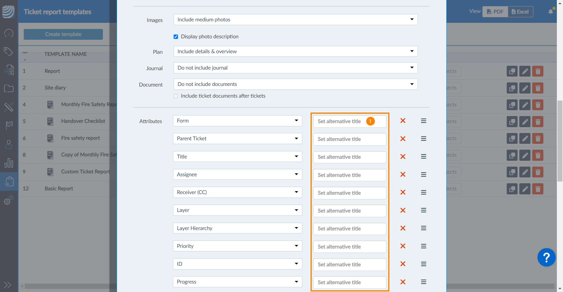 - Clique em Set alternative title ao lado do atributo desejado e digite um título