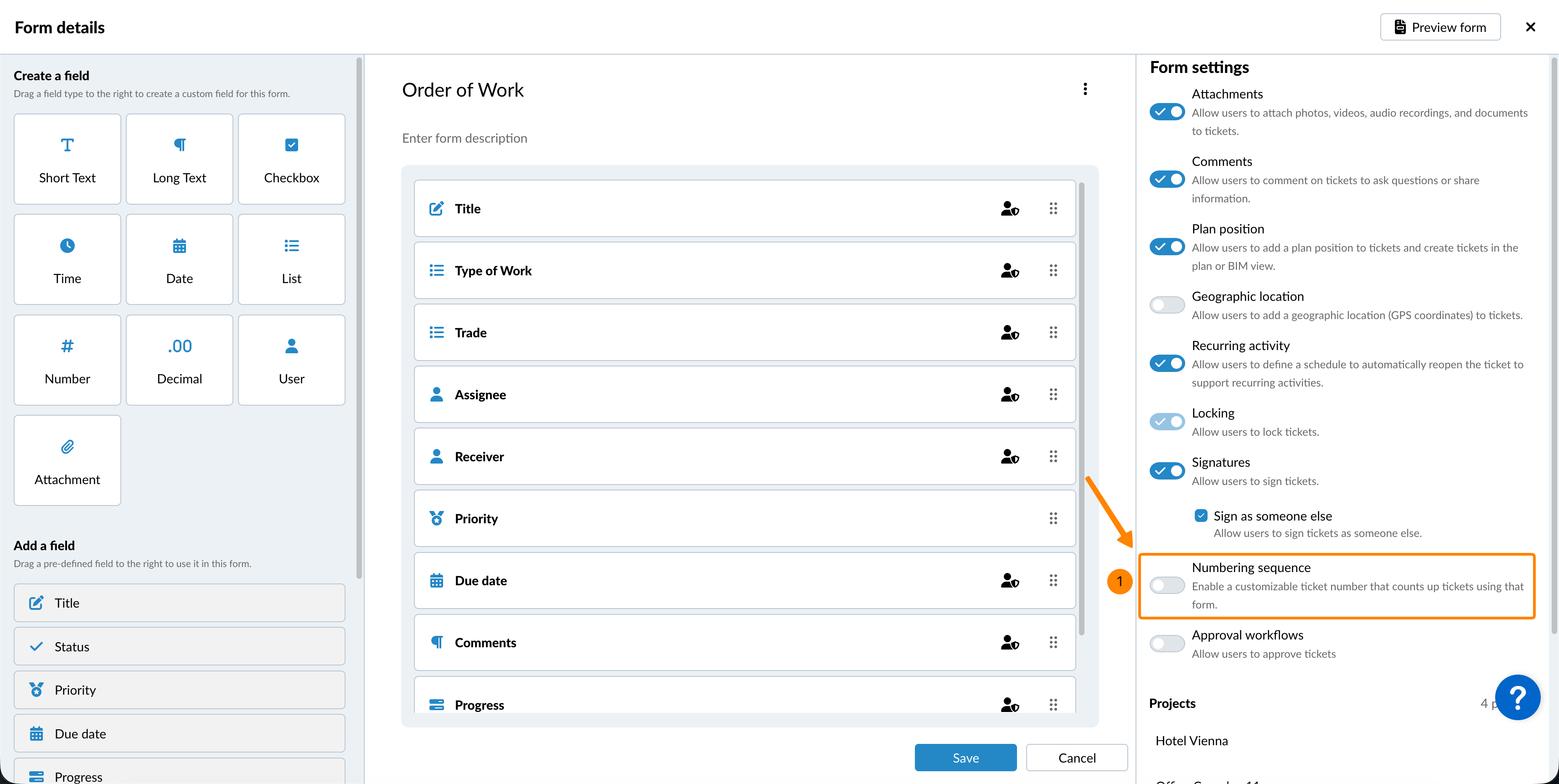A opção de sequência de numeração permite que o senhor adicione um número Tickets personalizável que é contado automaticamente a cada novo Tickets criado com esse formulário.