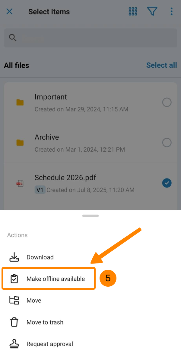 Use o recurso "Make available offline" para garantir que determinados arquivos estejam disponíveis mesmo quando o senhor estiver off-line.