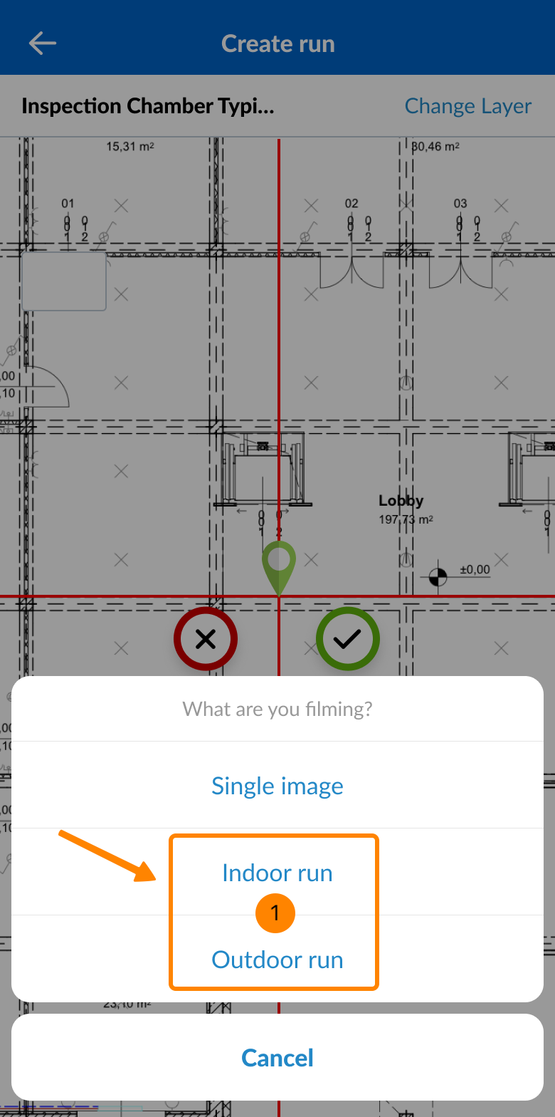 Criar uma corrida com o aplicativo móvel PlanRadar (conforme descrito acima) é a maneira mais fácil e recomendada. Como alternativa, o senhor pode Gravar uma corrida com o aplicativo Insta360 e, em seguida, Carregar uma corrida no aplicativo Web.