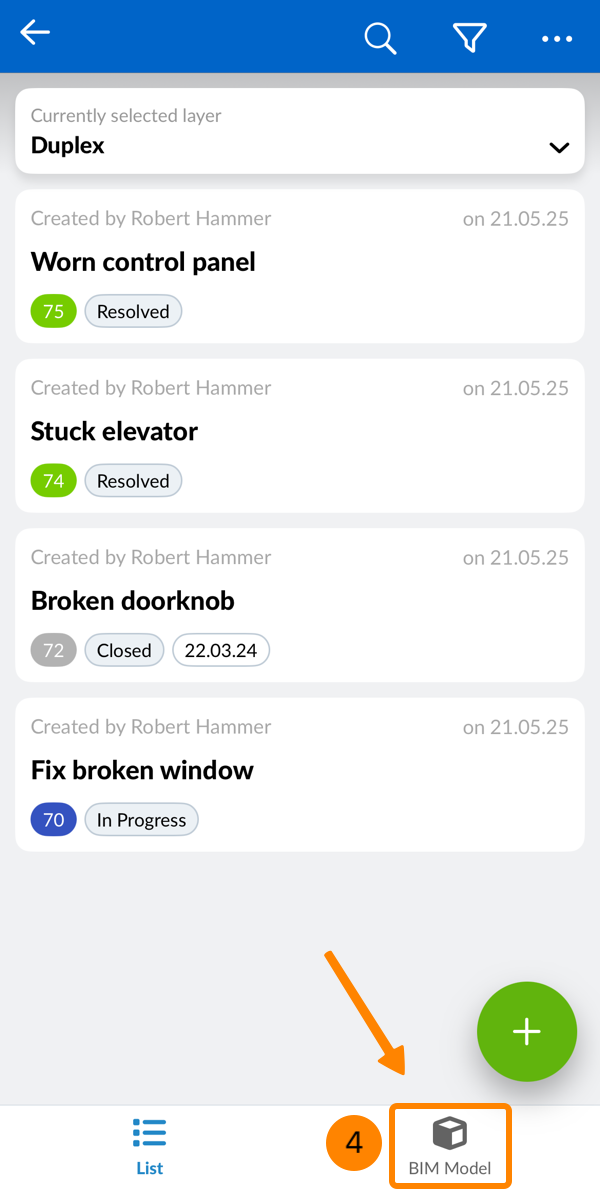 - Toque em uma camada com um modelo BIM (marcado por um ícone de cubo)
