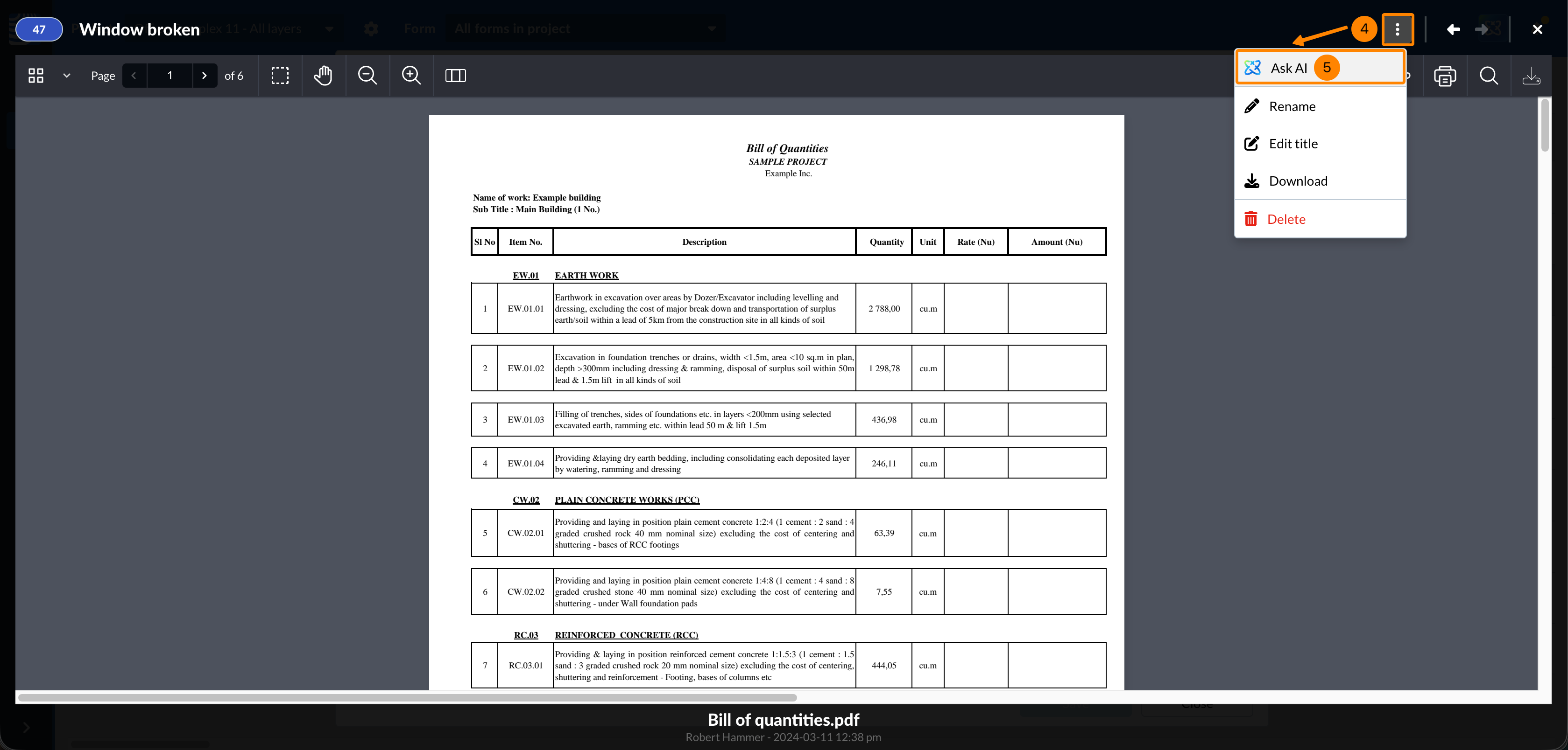Faça upload de documentos de lista de quantidades ou cronograma de obras para encontrar posições e escopo.