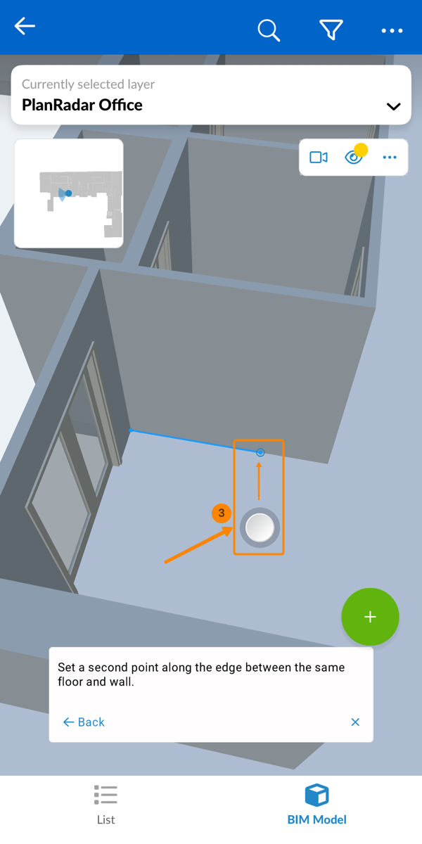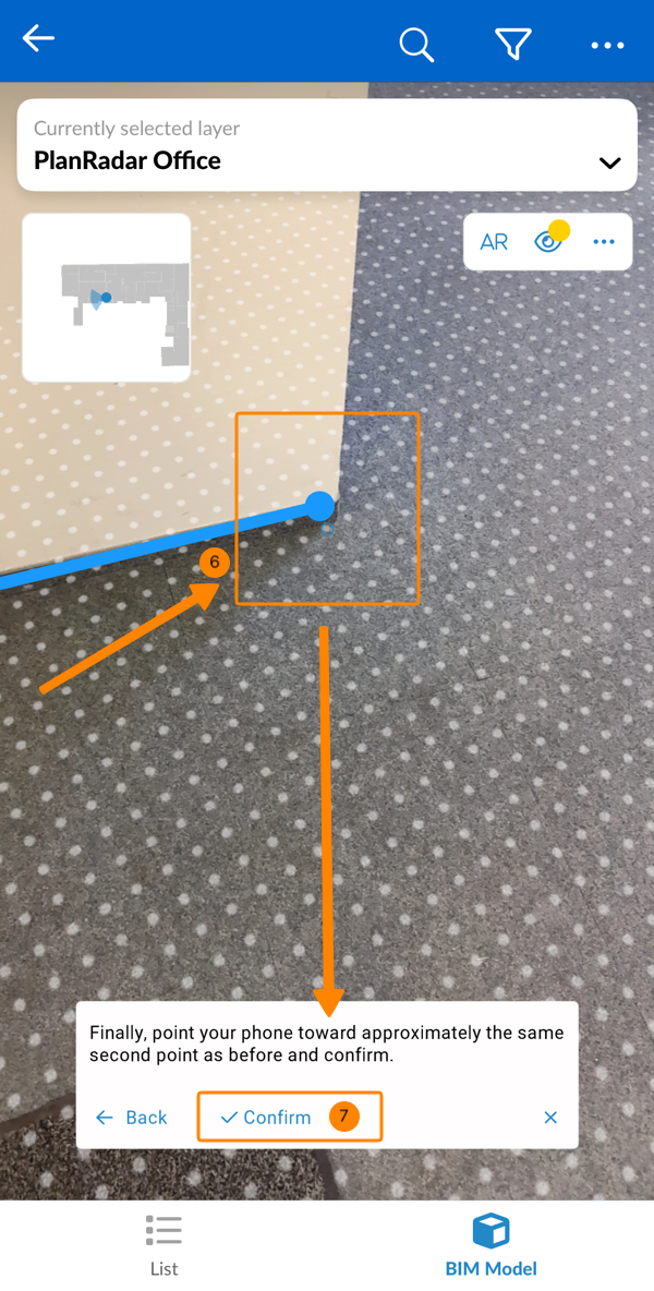 Aponte o dispositivo móvel para o local físico correspondente ao segundo ponto. - Toque em Confirm