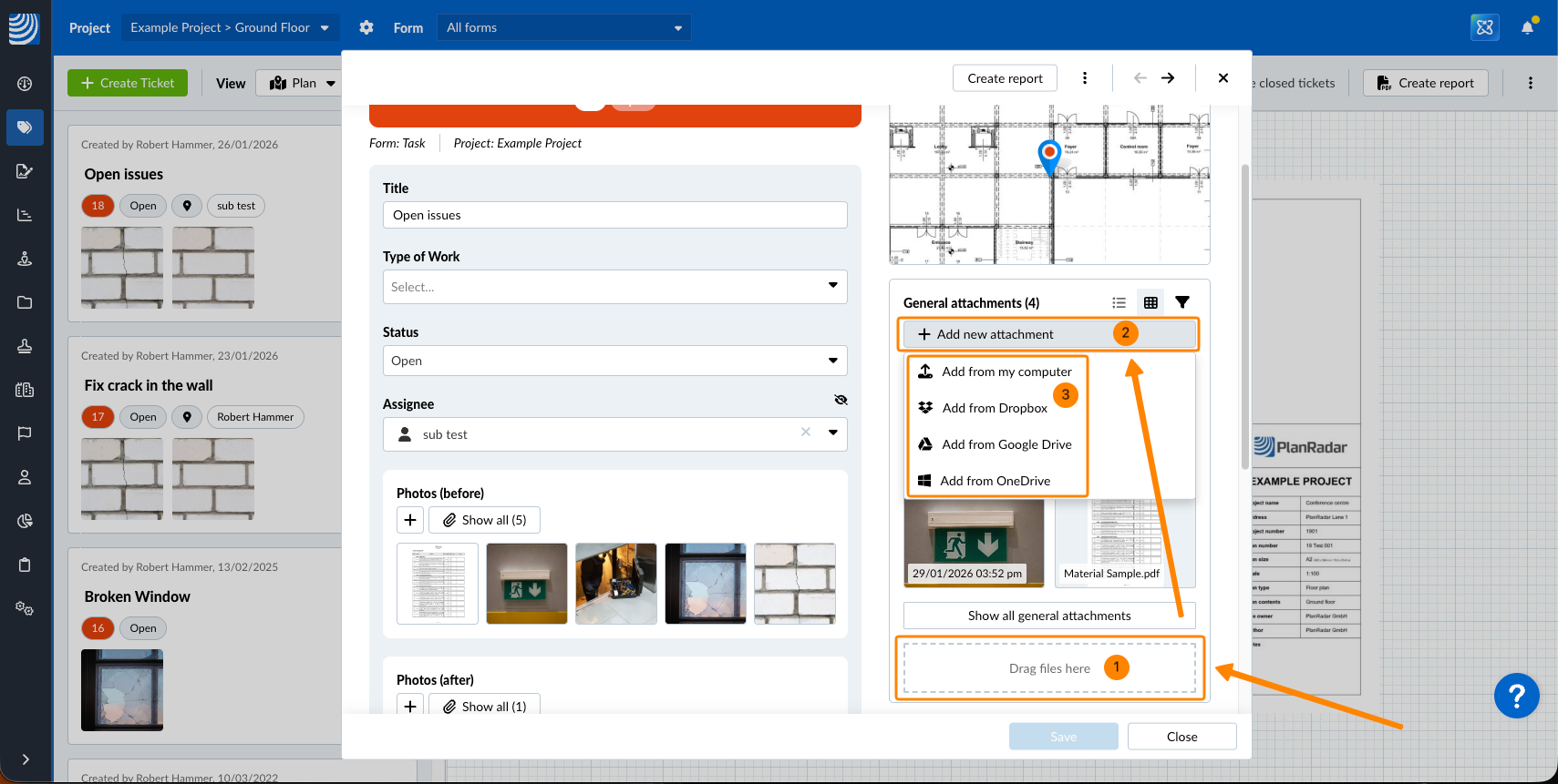 Para adicionar anexos de campo sua função precisa de permissão de edição para esse campo - também possível para subcontratados. Leia mais em Editar permissões de campo.