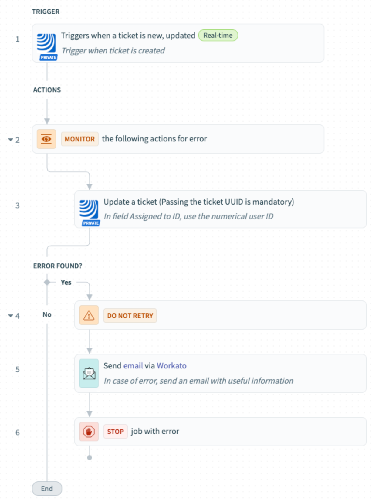Essa receita atribui cada tíquete recém-criado a um usuário padrão com base em seu ID de usuário.